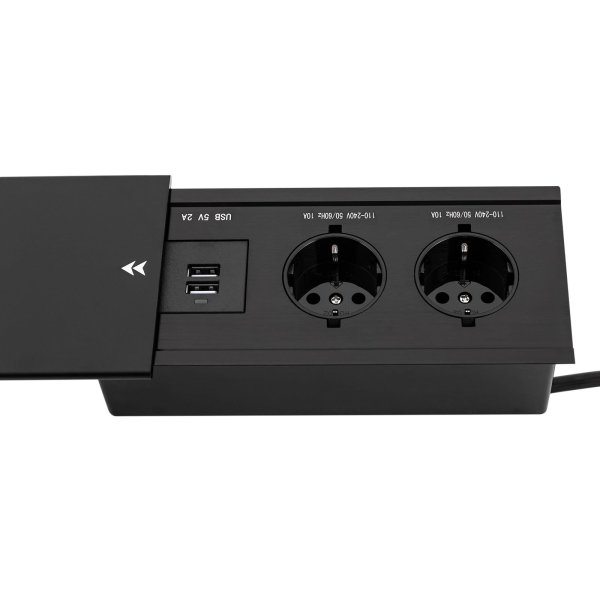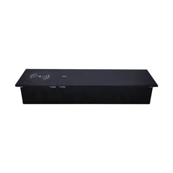 Praktična i elegantna klizna utičnica za ugradnju u radne plohe. Sadrži 2× šuko utičnice, USB-A i USB-C priključke za punjenje te bežični Qi punjač sa strane. Idealna za urede, konferencijske stolove i moderne interijere.