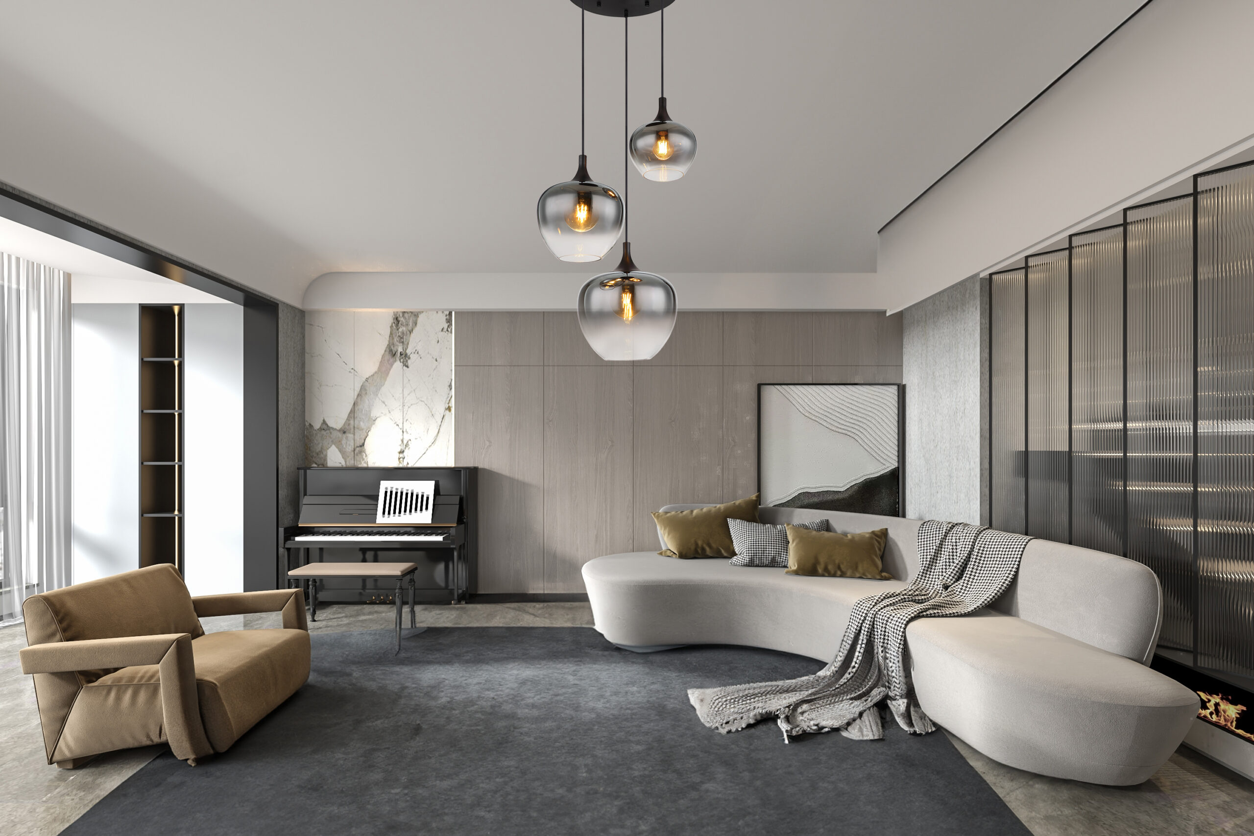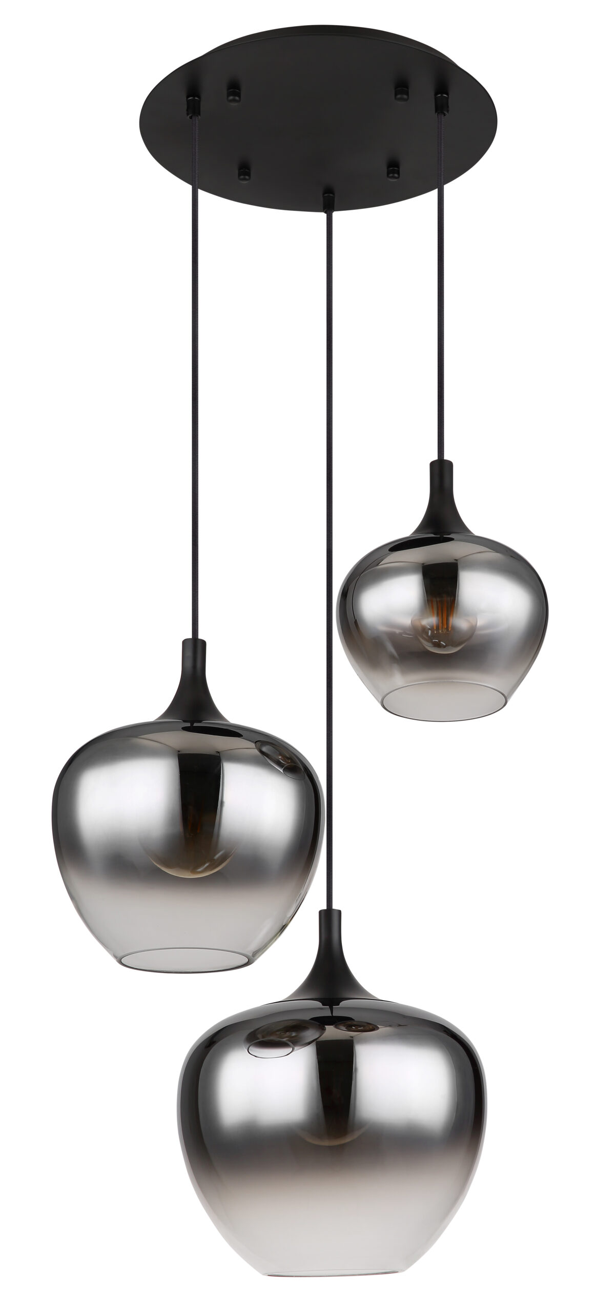 Luster na okruglom nosaču, sa 3 crne staklene kugle