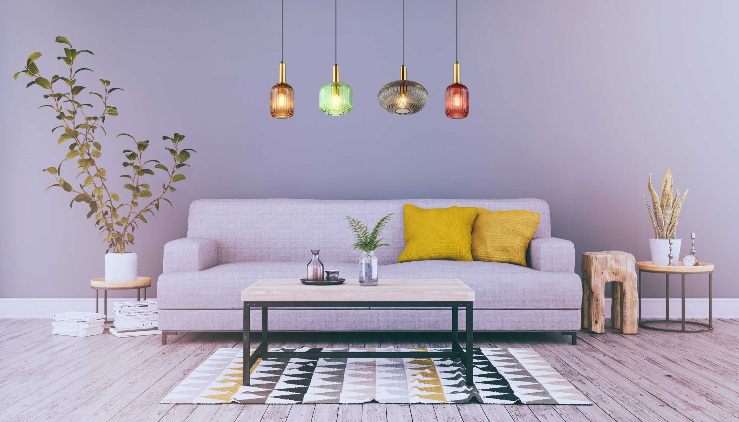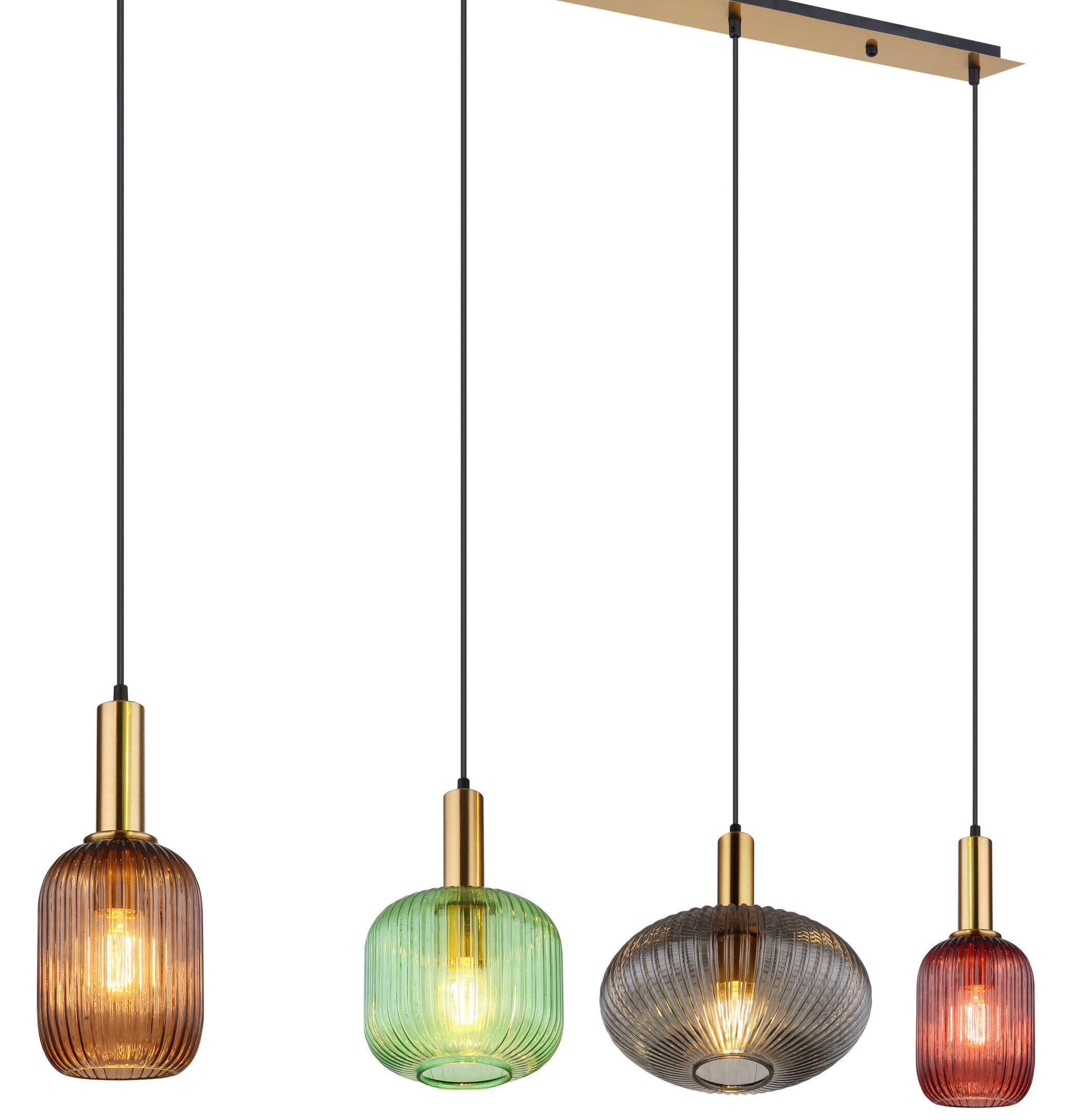 Luster na mesing ravnom nosaču sa 4 različite kugle u različitim bojama