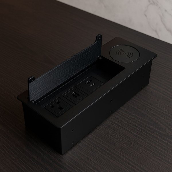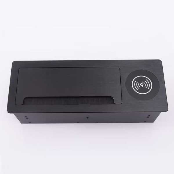Funkcionalna i elegantna podna utičnica s metlicama, savršena za uredske i konferencijske prostore. Opremljena s 3× šuko utičnice, USB-A i USB-C priključcima, UTP (LAN) mrežnim priključkom te bežičnim Qi punjenjem za mobilne uređaje. Metličasti poklopac omogućuje uredan prolaz kabela čak i kada je poklopac zatvoren.