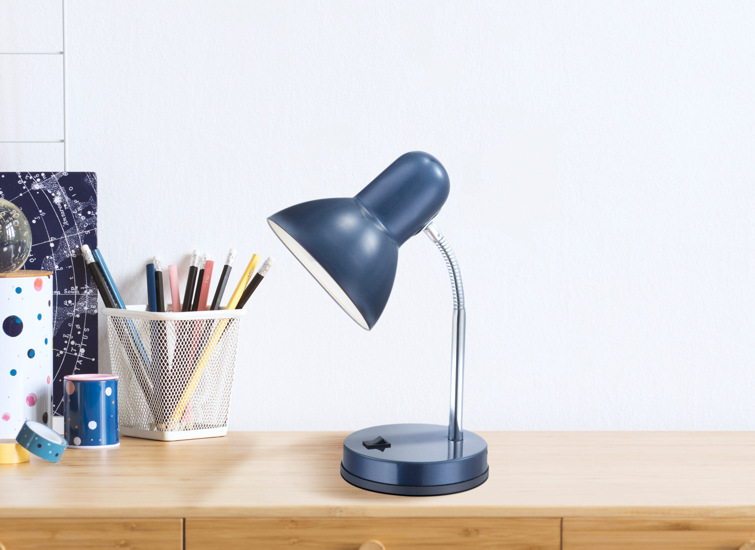 Ova stolna lampa, zahvaljujući svojoj jednostavnosti, unosi osjećaj mira i reda u svaku prostoriju. Ovaj model je opremljen praktičnom fleksibilnom rukom i pogodan je kao noćna lampa kao i kao izvor svjetlosti za radni sto. Praktično uključivanje i isključivanje osigurano je prekidačem na dnu svetiljke.