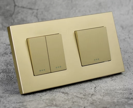 TECH WAVE jednopolni i serijski prekidač sa dvostrukim plastičnim okvirom- zlatna (komplet)