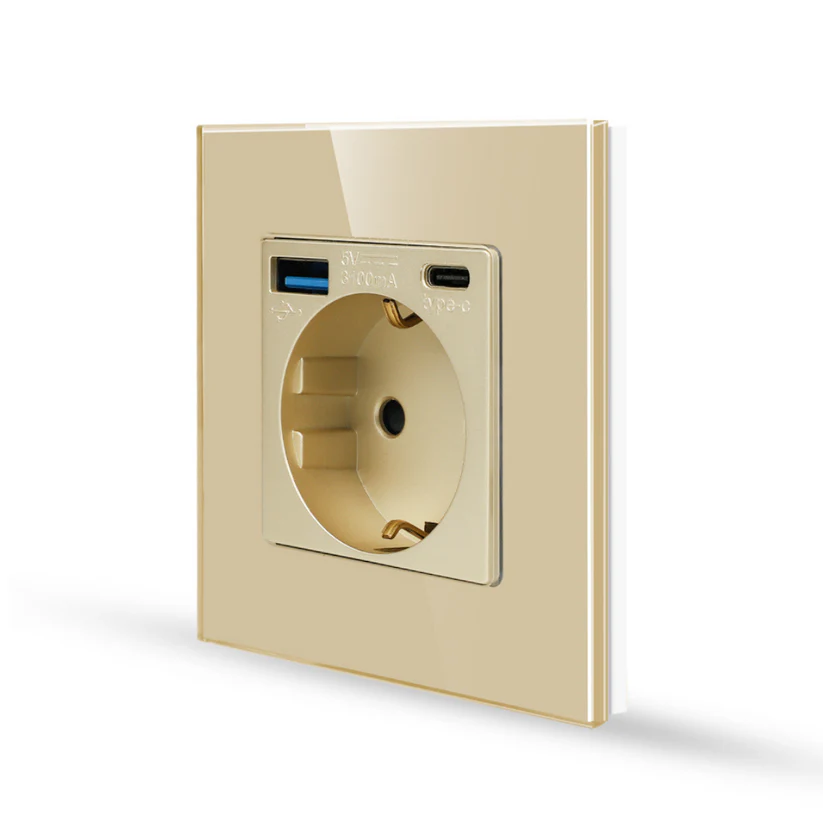 TECH WAVE utičnica sa USB/C priključkom i stakleni okvir- zlatna (komplet)
