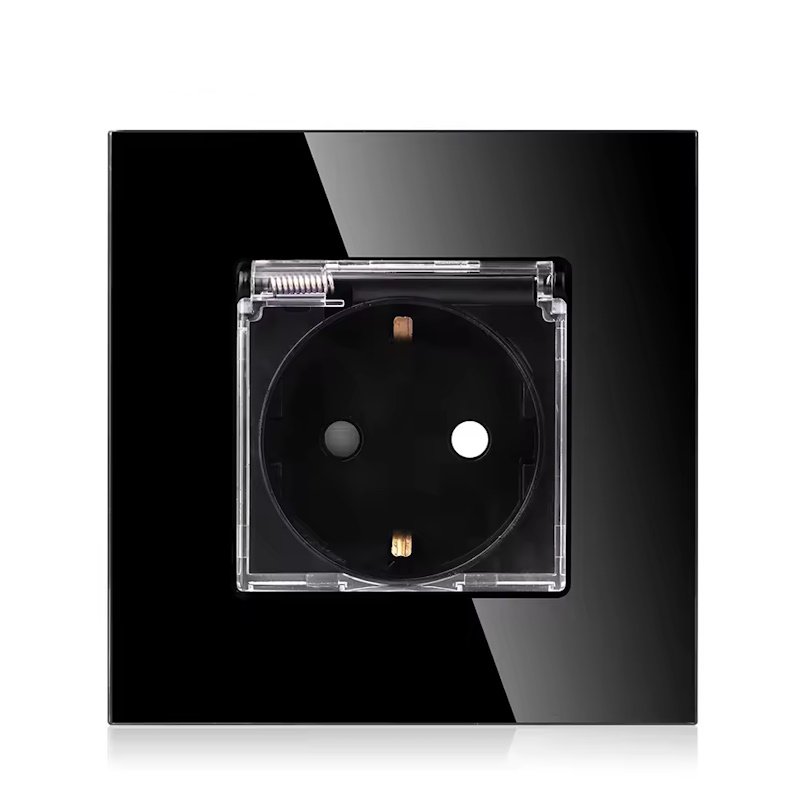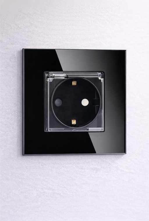 TECH WAVE utičnica sa zaštitom i stakleni okvir- crna (komplet)